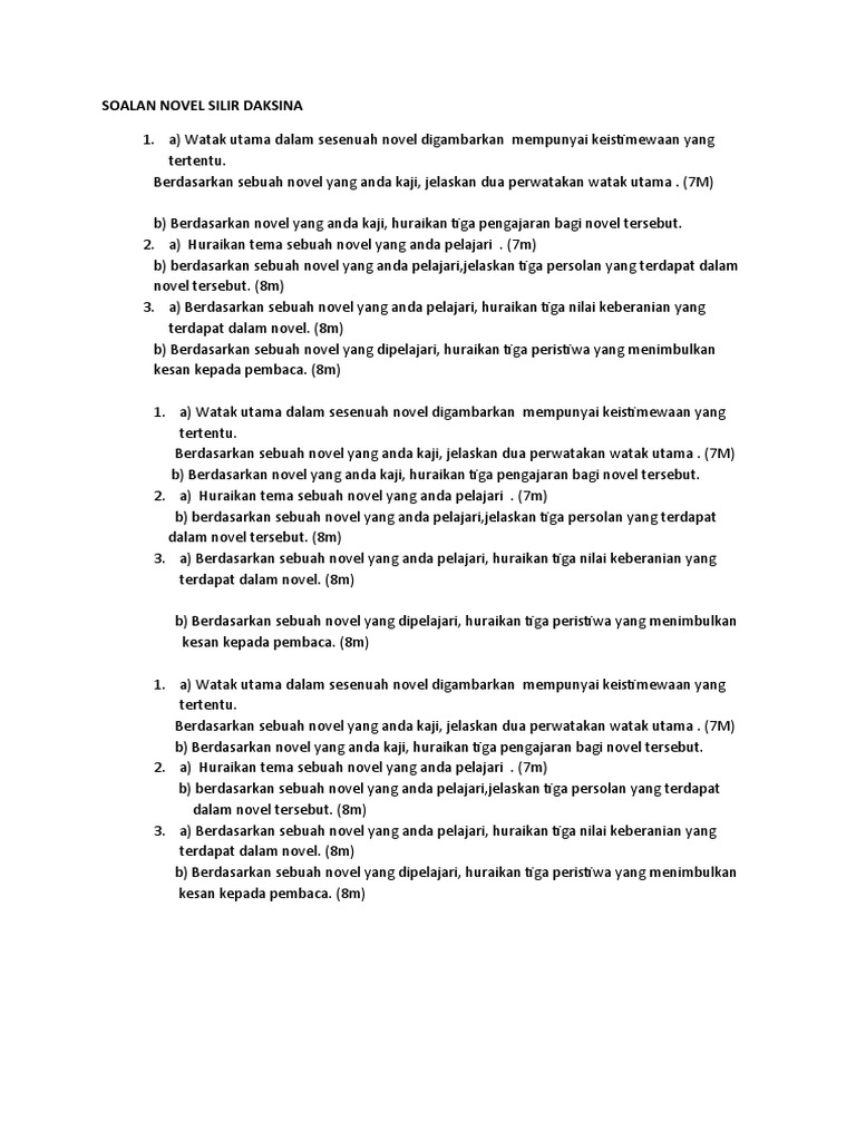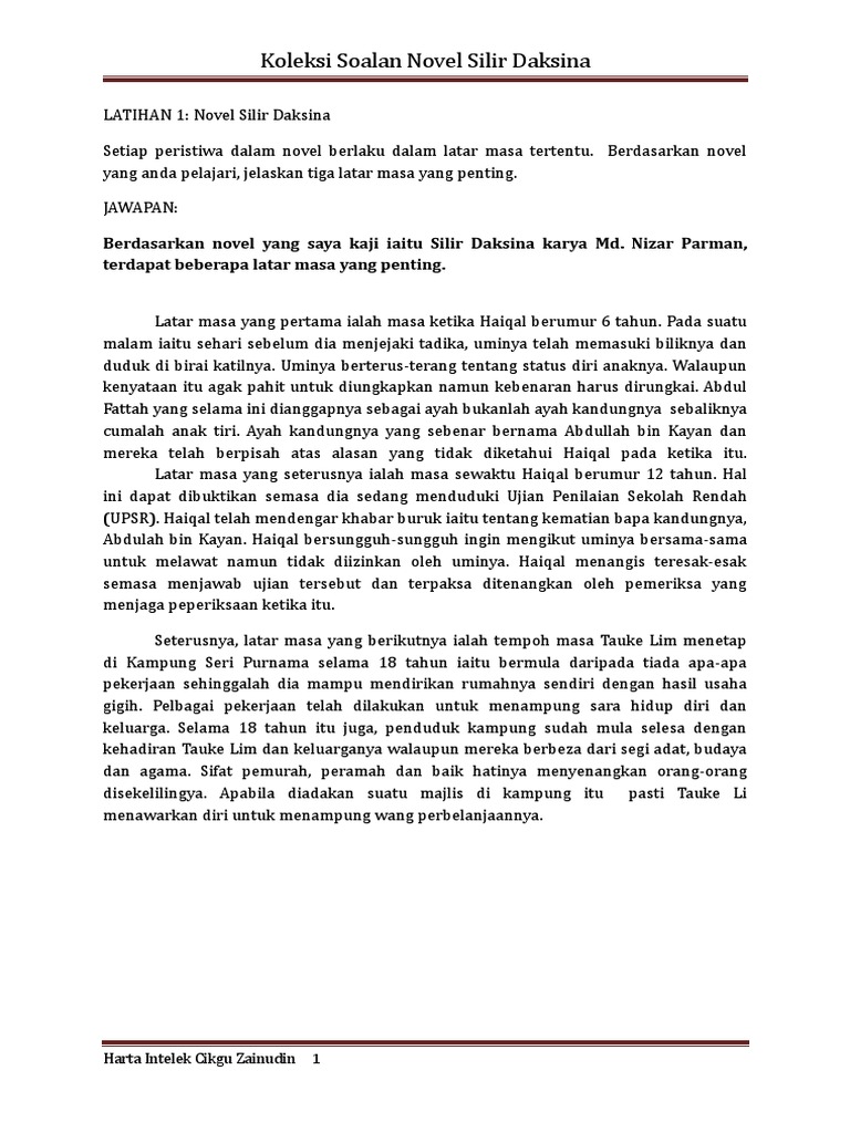 Koleksi Soalan Novel Silir Daksina Pdf